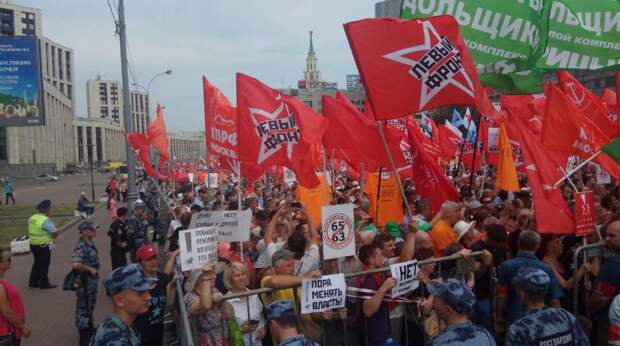 В Москве 28 июля прошла акция протеста против повышения пенсионного возраста, собравшая десятки тысяч участников. Протестующие прошли шествием от улицы Маши Порываевой до проспекта Академика Сахарова, где провели митинг с 12:00 до 14:00.