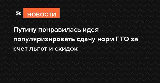 Президент России Владимир Путин одобрил идею губернатора Приморского края Олега Кожемяко ввести льготы и скидки в спортивных магазинах для граждан, сдавших нормы ГТО, чтобы привлечь к этому больше людей. Глава государства посчитал эту идею необычной, но согласился, что сдача нормативов не должна быть «вялой и скучной».