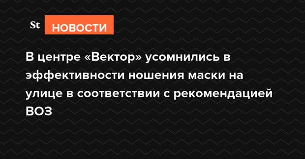 Всемирная организации здравоохранения (ВОЗ) ужесточила рекомендации по ношению масок. В ВОЗ призвали носить средства индивидуальной защите не только в закрытых помещениях, но и на улице. В российском центре вирусологии и биотехнологии «Вектор» новые правила ВОЗ посчитали избыточными, объяснив невозможностью обеспечения 100-процентоной защиты от заражения.