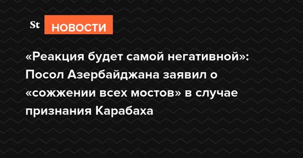 Посол Азербайджана в России Полад Бюльбюль-оглы заявил, что все мосты с Арменией будут сожжены в случае признания независимости Нагорно-Карабахской Республики (НКР). Реакция Баку будет «самой негативной», конфликт «будет только до конца», добавил он.