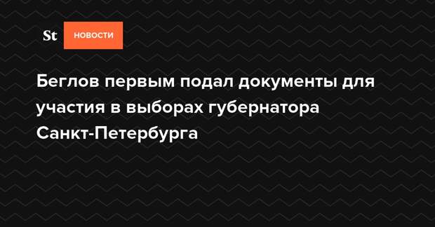 Исполняющий обязанности губернатора Санкт-Петербурга Александр Беглов первым подал 1 июня в городскую избирательную комиссию документы для участия в предстоящих выборах губернатора города. Об этом сообщил член избирательной комиссии с правом решающего голоса Олег Зацепа.