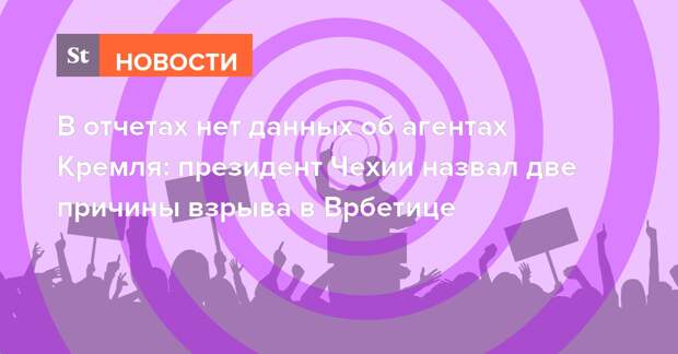 Президент Чехии Милош Земан озвучил две версии инцидента в деревне Врбетица, где в 2014 году произошло два взрыва на складе боеприпасов. Глава государства заявил, что это было неосторожное обращение с боеприпасами, либо участие иностранных спецслужб.