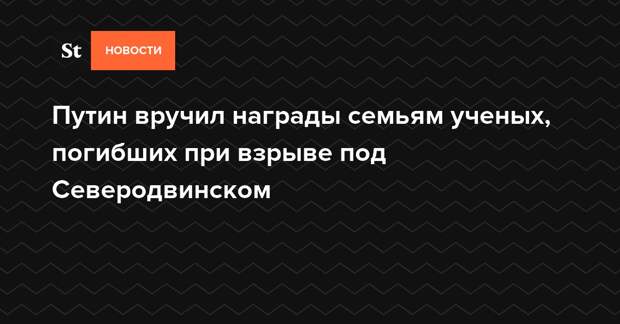 Президент России Владимир Путин в Кремле вручил семьям погибших под Северодвинском сотрудников ядерного центра из Сарова (Нижегородская область) ордена Мужества, присужденные посмертно. 8 августа на военном полигоне близ поселка Ненокса произошел взрыв, жертвами которого, по данным «Росатома», стали пять сотрудников госкорпорации, еще трое пострадали и были госпитализированы. Глава государства встретился с семьями погибших вечером в Кремле.