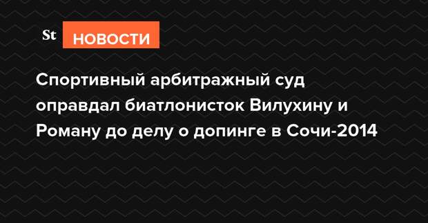 Спортивный арбитражный суд (CAS) удовлетворил апелляции биатлонисток Ольги Вилухиной и Яны Романовой на решение Международного олимпийского комитета (МОК) об их дисквалификации за нарушение антидопинговых правил во время Олимпиады-2014 в Сочи.