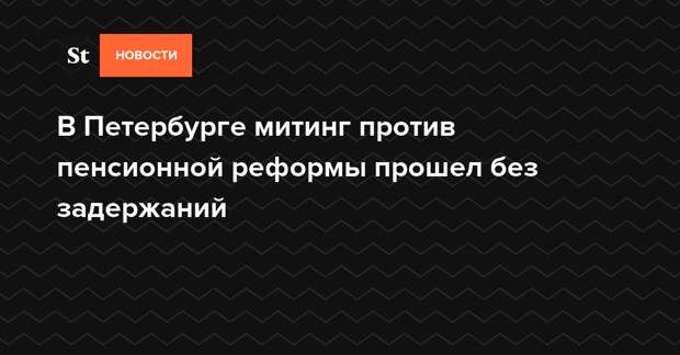 В Санкт-Петербурге прошел митинг против пенсионной реформы. Акция продолжалась около двух часов, с 13:00 мск до 15:00 мск. Протестующие провели согласованное с властями мероприятие в Свердловском саду, правоохранительные органы не задержали никого из пришедших, однако одну участницу митинга после попытки задержания отправили в больницу.