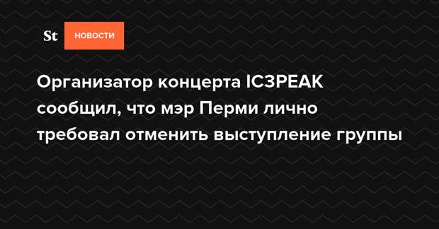 Мэр Перми Дмитрий Самойлов лично общался с организаторами концерта музыкальной группы IC3PEAK и настоятельно рекомендовал им не проводить мероприятие из-за «суицидальной направленности» текстов коллектива. Об этом рассказал арт-директор концертного бара Cape Town Давид Шелтер.