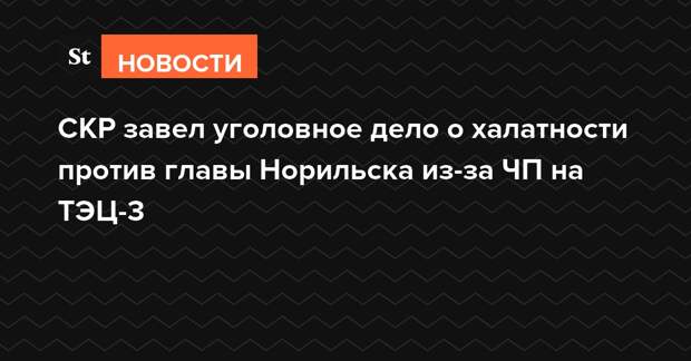 Следственный комитет России (СКР) возбудил уголовное дело по факту халатности главы Норильска Рината Ахметчина в ситуации, вызванной разливом топлива из аварийного резервуара на ТЭЦ-3.