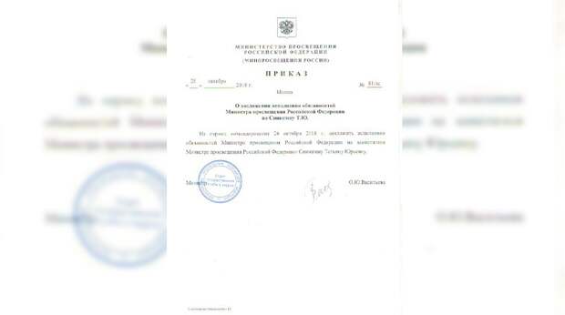 Приказ о приостановлении образовательной деятельности в школе «Горки» подписала не Васильева, а ее заместитель — Татьяна Синюгина. Перед закрытием школы Васильева на день передала Синюгиной свои полномочия.