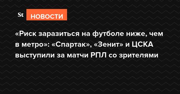 На исполкоме Российского футбольного союза (РФС) «Спартак», «Зенит», ЦСКА и «Краснодар» выступили за вариант возобновления чемпионата страны 21 июня со зрителями. Людей в масках и перчатках можно рассаживать на трибунах на расстоянии пары метров, считают ведущие клубы.