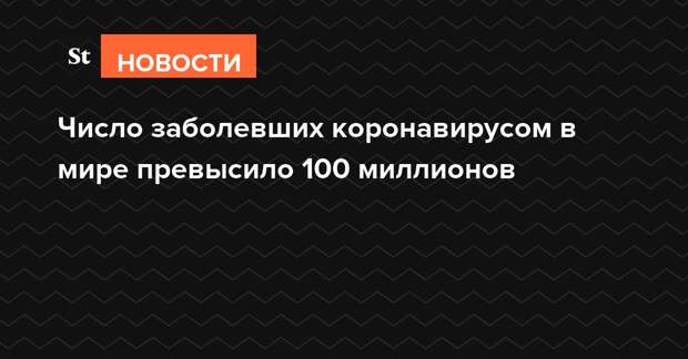 Число заболевших коронавирусом в мире превысило 100 миллионов человек, сообщает Университет Джонса Хопкинса на основании данных от медицинских ведомств стран мира. Умерли от инфекции более 2,15 миллиона человек. Россия занимает в списке четвертую позицию (3,75 миллионов) по числу случаев и восьмую (69 тысяч) по количеству умерших.