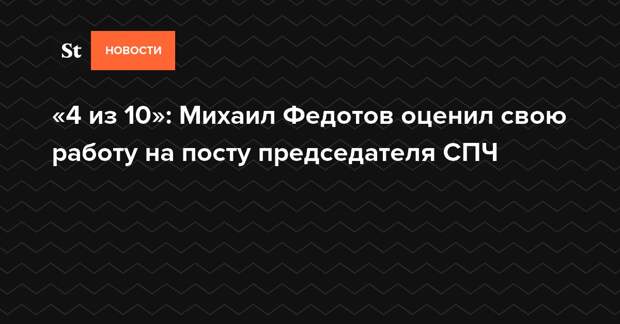 Бывший председатель Совета при президенте России по развитию гражданского общества и правам человека (СПЧ) Михаил Федотов в беседе с Daily Storm оценил свою работу на посту на 4 из 10 баллов. Федотов пояснил, что он максималист и хотел бы сделать намного больше.