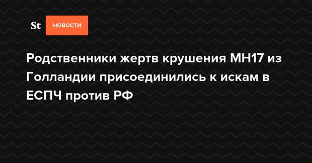 55 подданных Нидерландов, родные которых погибли при крушении рейса MH17 в Донбассе летом 2014 года, подали иск в Европейский суд по правам человека (ЕСПЧ) против России. Их главное требование — добиться от российских властей конструктивности в расследовании обстоятельств гибели пассажирского лайнера.