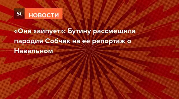 Телеведущая Ксения Собчак в своем шоу «Осторожно: Новости» показала пародию на поездку члена Общественной палаты Марии Бутиной в ИК-2, где отбывает срок оппозиционер Алексей Навальный. Облачившись в рыжий парик, Собчак пришла в здание с роскошными интерьерами и в образе Бутиной рассказывала о «настоящей» жизни в колонии Навального.