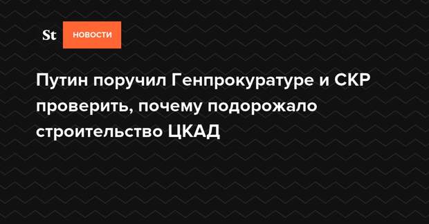 Президент России Владимир Путин поручил Генпрокуратуре, Следственному комитету и Счетной палате проверить соблюдение интересов страны при выполнении госконтрактов и обоснованности увеличения стоимости строительства Центральной кольцевой автодороги (ЦКАД).