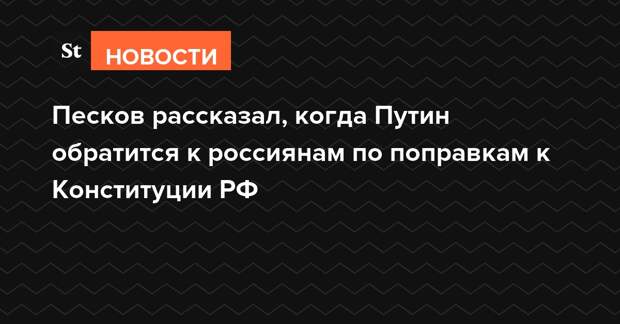Президент РФ Владимир Путин может обратиться к россиянам по поправкам к Конституции страны, если посчитает такое обращение необходимым. Об этом в ходе ежедневного брифинга рассказал пресс-секретарь российского лидера Дмитрий Песков.